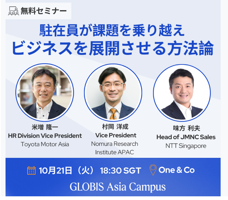 グロービスでは2026年1月期に「駐在員プログラム」を開講します。開講に先立ちまして、日本人駐在員向けの特別セミナーを、One&Co様とのタイアップで実施することになりました。